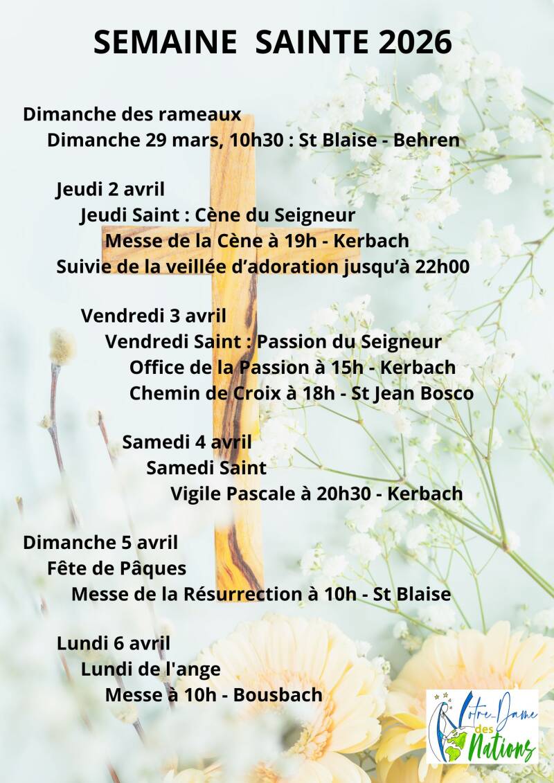 - Jeudi : 18h à Behren (A St Blaise de Mai à Septembre - A St Jean Bosco d'Octobre à Avril)